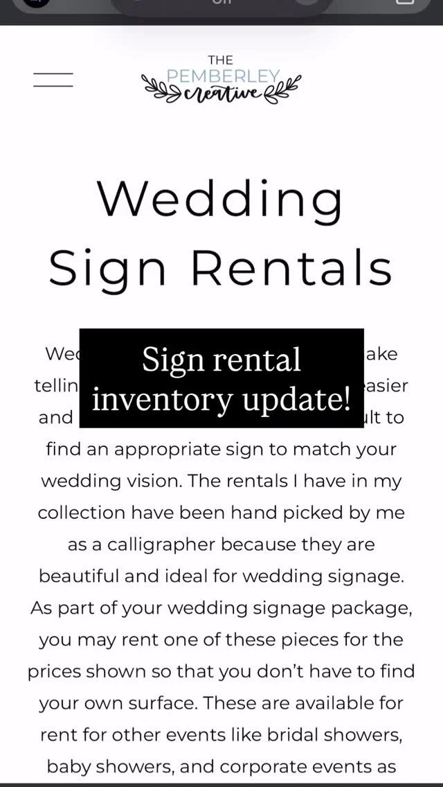 All of my wedding signs are custom made - each one is a unique piece made for your wedding day. Because I create customized wedding signage, I don’t have predetermined prices. I take great care in discussing exactly what my clients are looking for before establishing a price - prices vary based on the surface material and complexity of the design. My starting prices are listed below so you can get an idea of how much to budget for in your wedding signage budget, but please understand that the cost will increase with more intricate designs or requirements. If you submit a contact form here, I would be happy to talk to you further about your signage needs and send you a custom quote.