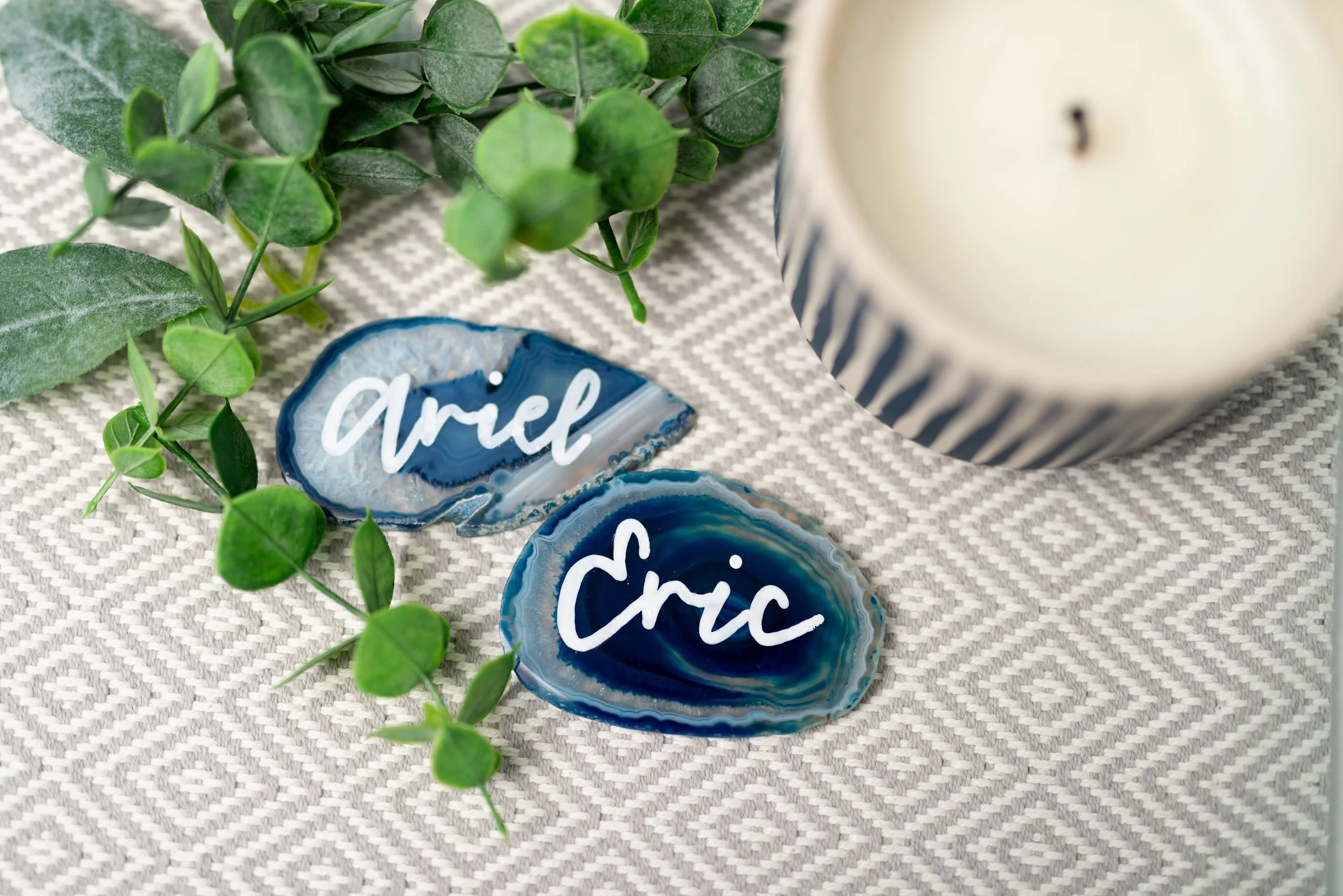 The sooner the better! I typically book wedding signage packages three to six months ahead of time to ensure we have enough time to perfect your custom designs and for me to execute them. However, if you have a project that needs a faster turnaround, please don’t hesitate to contact me to see if I have openings in my schedule, but be aware that a rush fee may apply.